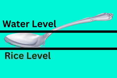 when add in water lay down the spoon on top of the rice holding the other end of the spoon and the water shuold cover the Spoon.