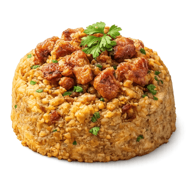 Mashed green plantains mixed with garlic and pork cracklings, often filled with seafood or meat. A true symbol of Puerto Rican flavor.